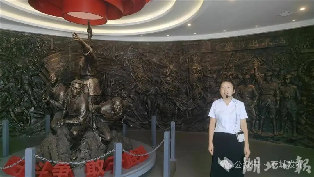 纪念馆内记录了麻城从1927年第一个农民协会成立到1949年全境解放的22年斗争史。“黄麻来了共产党,穷苦大众把头抬……”说到动情处,讲解员张海燕唱起歌谣《崭新世界我们开》。在乘马岗,红四方面军、红二十五军、红二十八军三支红军队伍从这里出发,为新中国解放事业作出了巨大贡献。