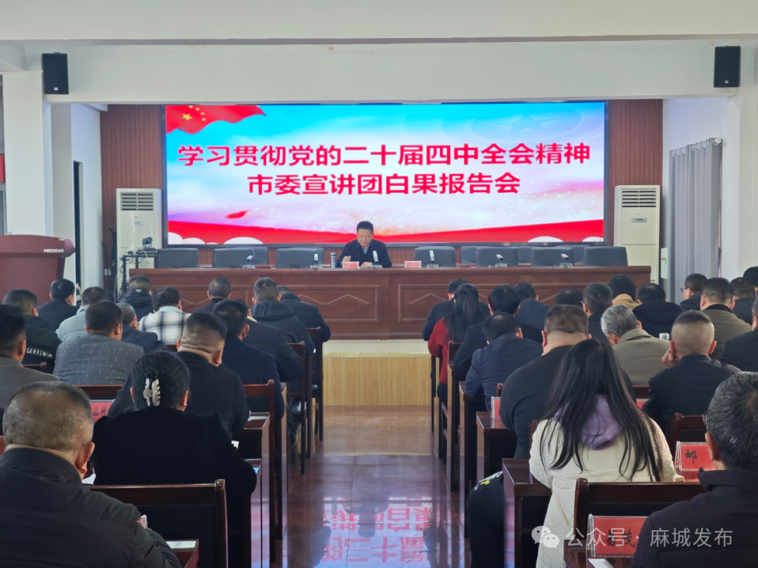 12月9日,市委宣讲团成员、市人大常委会副主任訚中乐到白果镇专题宣讲党的二十届四中全会精神。