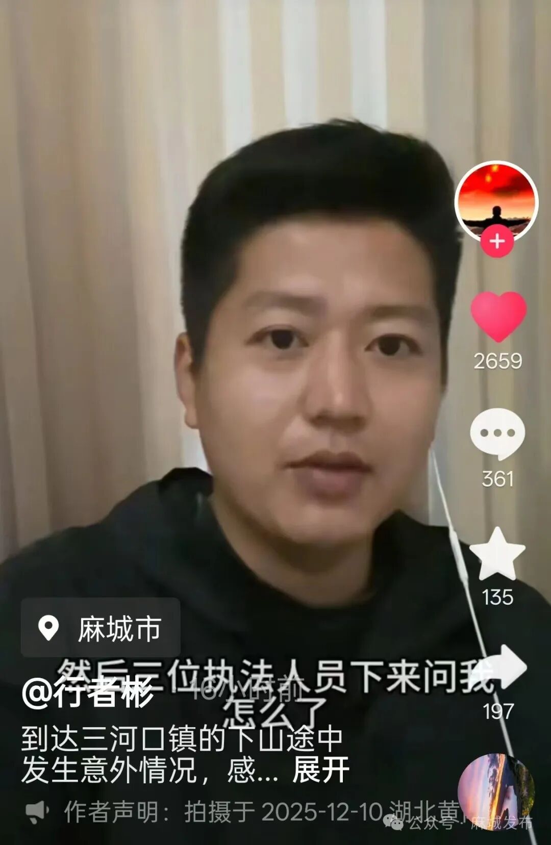 当晚,“行者彬”特意剪辑了一段视频记录这段暖心经历,视频发布后,迅速收获了数千点赞和数百条评论。网友们纷纷留言:“执法者还是有大爱的,好人一生平安”“麻城不错的地方,人也热情”“为麻城交通执法人员点赞”。
