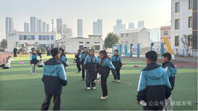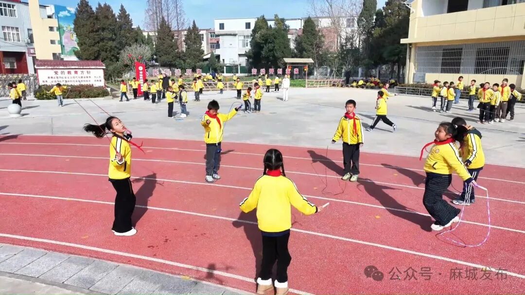 1月14日,麻城市第五小学熊岗校区开展阳光体育大课间展示活动,全校师生齐聚绿茵场地,在30分钟的时间里尽情运动,展现出朝气蓬勃的精神风貌。