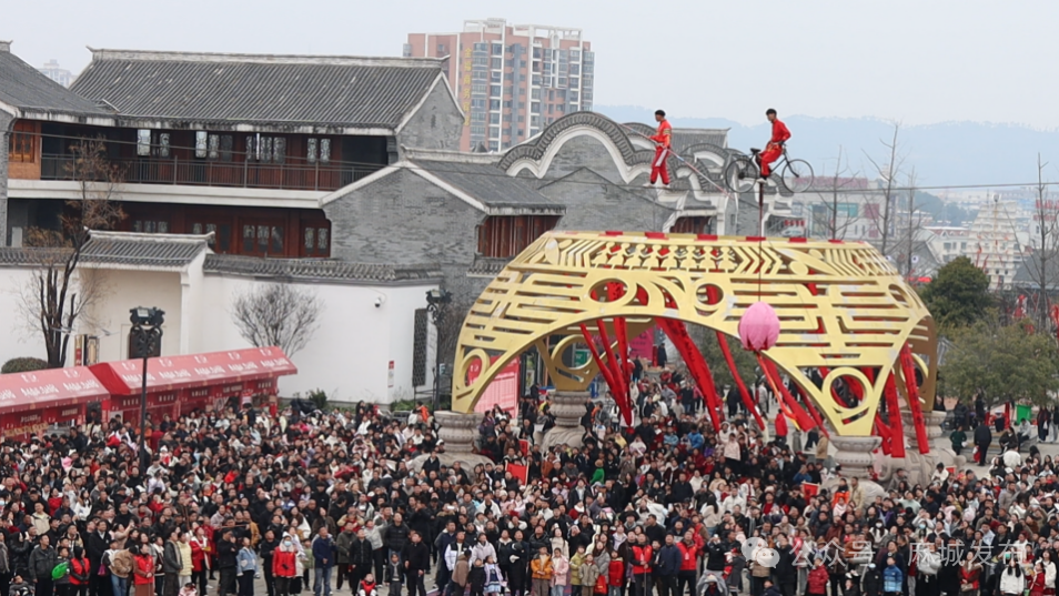 据悉,本次活动以“纳福、祈福、赐福、接福、传福” 五大主线贯穿全场,打造“记忆中的年味、文化中的年味、舌尖中的年味、科技中的年味”四重体验。“麻姑仙子”飞天演艺、高空走钢丝、高桩醒狮、掌灯仪式、花神巡游、麻婆说媒、一夜鱼龙舞等百余场特色演艺轮番上演,场面热闹非凡。