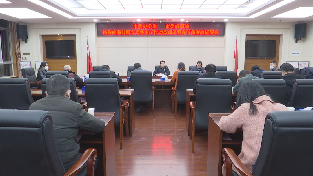 1月11日,市委办公室、市委政研室召开违规吃喝问题专项整治工作动员部署暨春节前廉政提醒会,传达学习省、黄冈市及麻城市关于开展违规吃喝问题专项整治工作动员部署会议精神,并就做好春节期间党风廉政工作进行专项提醒。