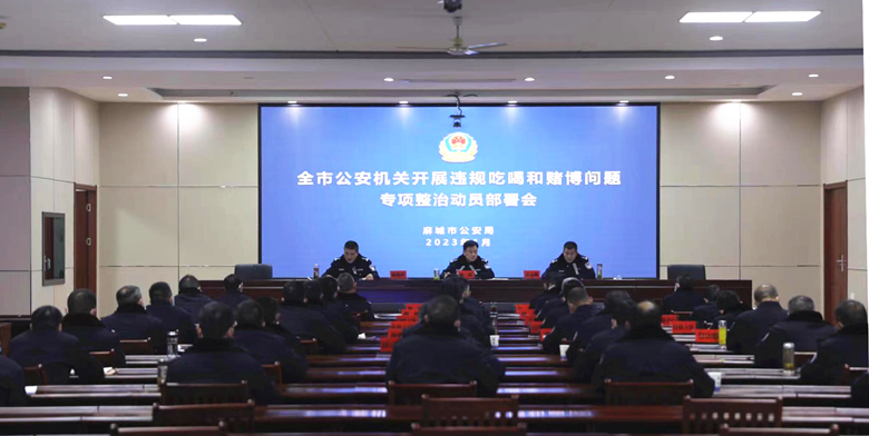 1月12日晚,市公安局召开违规吃喝和赌博问题专项整治动员暨当前重点工作部署会。副市长、市公安局长陈琪出席会议并讲话。会议解读了《麻城市公安局开展违规吃喝和赌博问题专项整治工作方案》,传达学习了省委、黄冈市委、麻城市委关于整治违规吃喝的系列会议精神,对部署开展违规吃喝和赌博问题专项整治进行再动员、再部署。