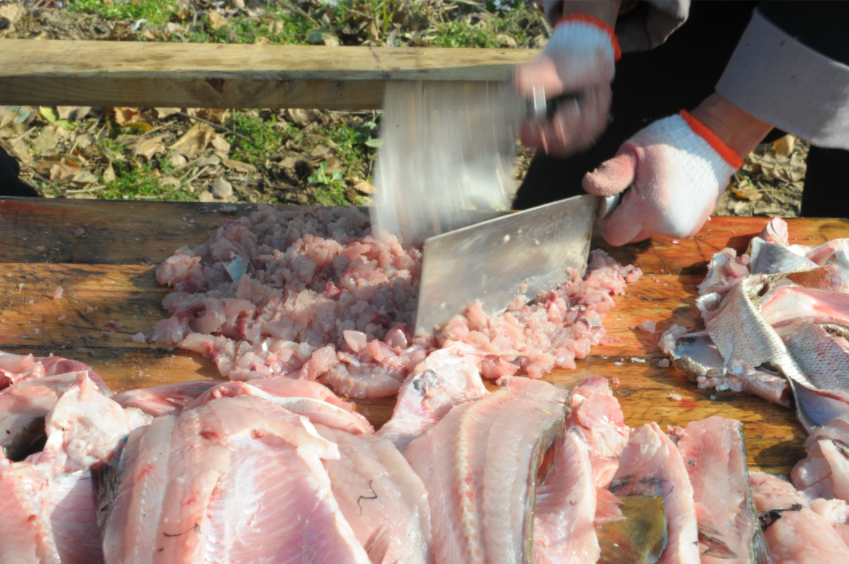 在不同的时代,麻城人喜欢吃的鱼不尽相同,而且各地水域差别很大,如果选用特殊小众鱼类,做出来的肉糕必失民心。所以白果肉糕选用大众化的花鲢,为了提升鱼肉品质,摈弃了塘湖人工养殖的花鲢,直取鄂东明珠明山水库的百米深水花鲢。并将整鱼肉质分级,取细腻鲜嫩的脊肉,搭配现杀猪肉中的臀部肉,做成了鲜而不腻的肉浆。