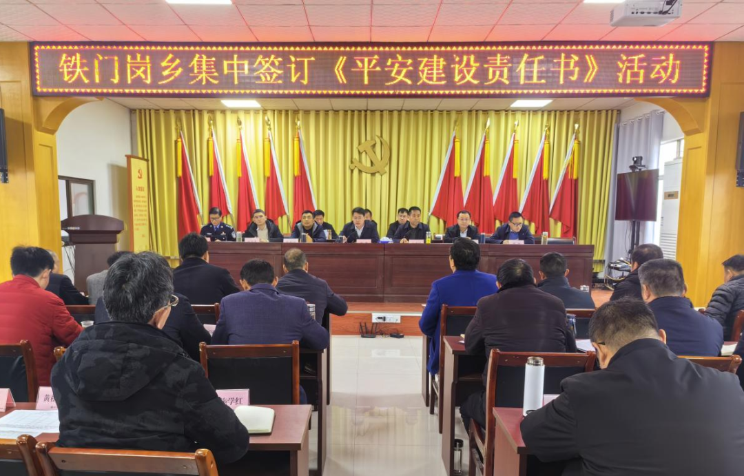 2月21日,铁门岗乡召开平安建设专题工作会议,安排全乡全国“两会”期间信访维稳和平安建设工作,集中签订《平安建设责任书》。