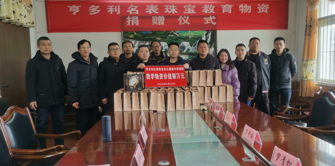 近日,武汉亨多利名表珠宝有限公司技术总监罗登成、新宇亨达利董事王志伟、罗青松、刘传亮、邹志生等六位白果籍在外经商企业家代表,来到白果镇中,看望慰问基层老师和农村留守孩子,并现场捐赠价值八万元的教育教学物资,用于表彰和奖励农村优秀学子。