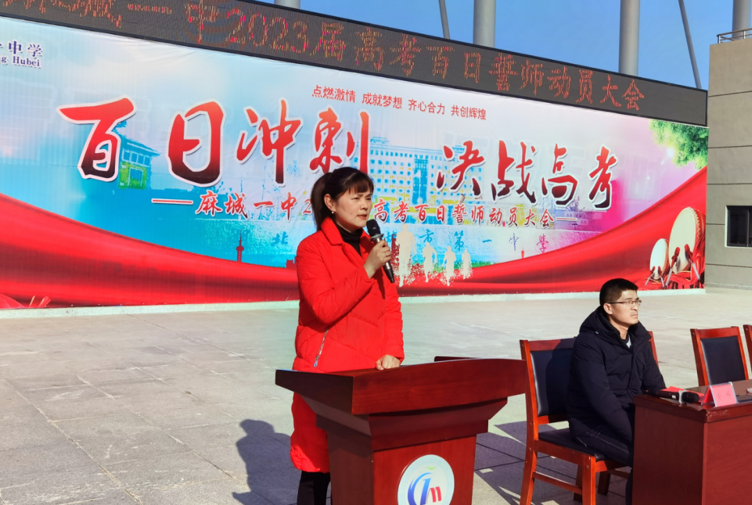 2月27日,麻城一中举行2023届高考百日誓师动员大会,1600 多名高三学子齐聚学校体育场举起右手庄严宣誓,严格自律,惜时如金,百日征程,百炼成钢。