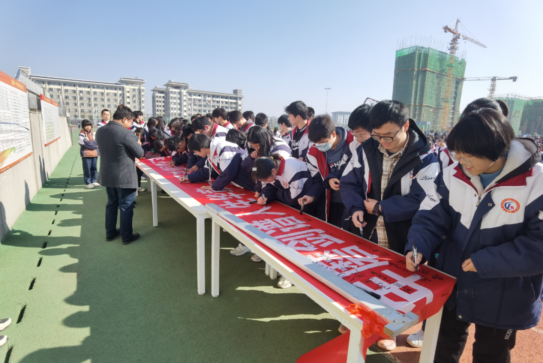 学生代表、老师代表、家长代表踊跃发言,激励大家珍惜百天,拼搏一百天,奋斗一百天,鼓足干劲,全力冲刺,决战高考,拥抱明天。