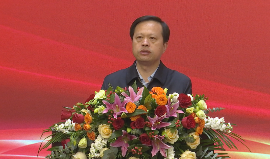 全国工商联石材业商会会长刘良宣读《关于授予麻城市全国石材高质量发展示范城市的决定》并作专题演讲。