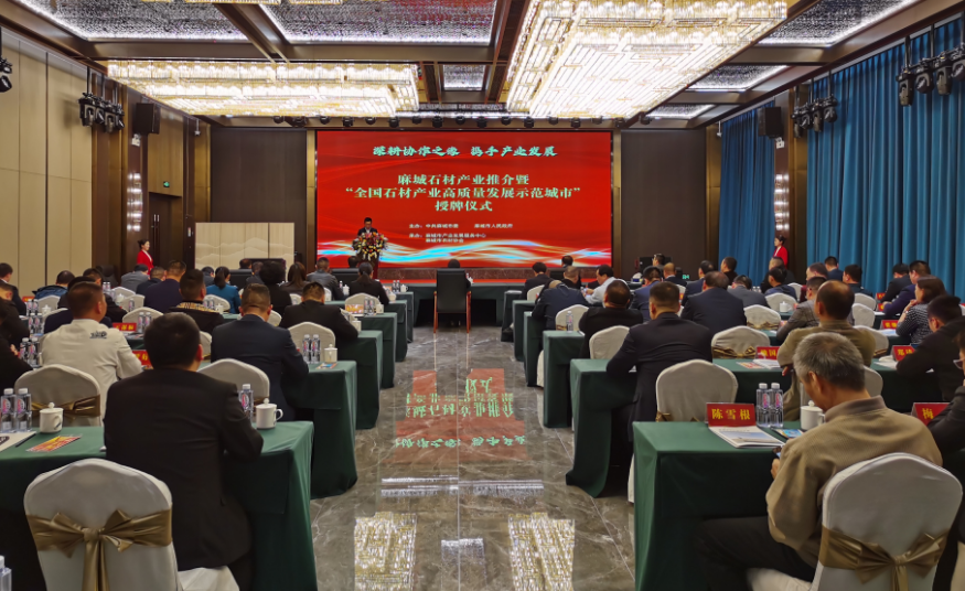 市委副书记、市长裴永波推介麻城石材。裴永波表示,麻城石材品质独一无二、享誉全球。麻城是“中国花岗石之乡”,石材产品出口到欧美、中东等50多个国家和地区,实现了“买全球、卖全球”。麻城石材产业基础扎实、发展迅猛。坚持向“新”奋进、向“高”攀升,已形成集研发设计、石雕石刻、会展贸易等全产业链发展,被评为全省重点产业集群、全国石材产业集群示范城市。麻城发展平台集约高效、支撑有力。坚持“生态优先、绿色发展”理念,全方位推进绿色矿山建设。强化要素保障,着力打造集工业、商贸于一体的石材全产业链发展示范区。麻城石材产业前景广阔、大有可为。黄冈市提出“支持打造全国性石材交易中心”,石材产业发展机遇前所未有。麻城将以开放的胸怀广纳天下之客、汇聚发展之力,热切期盼更多有志之士推介麻城、选择麻城、投资麻城。