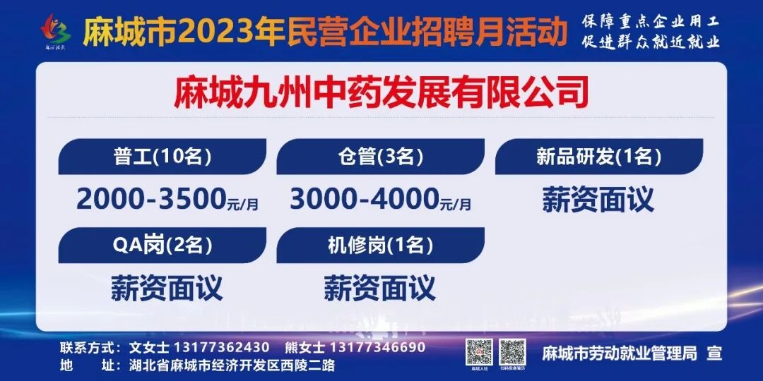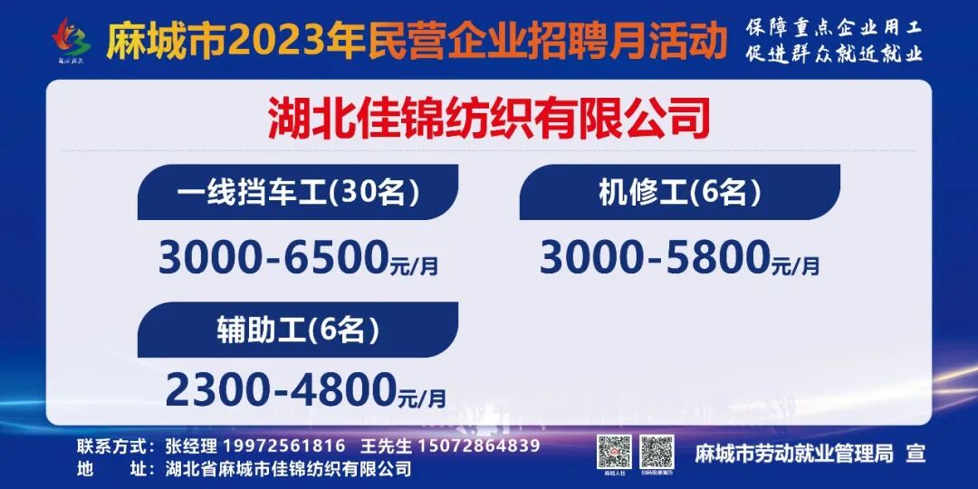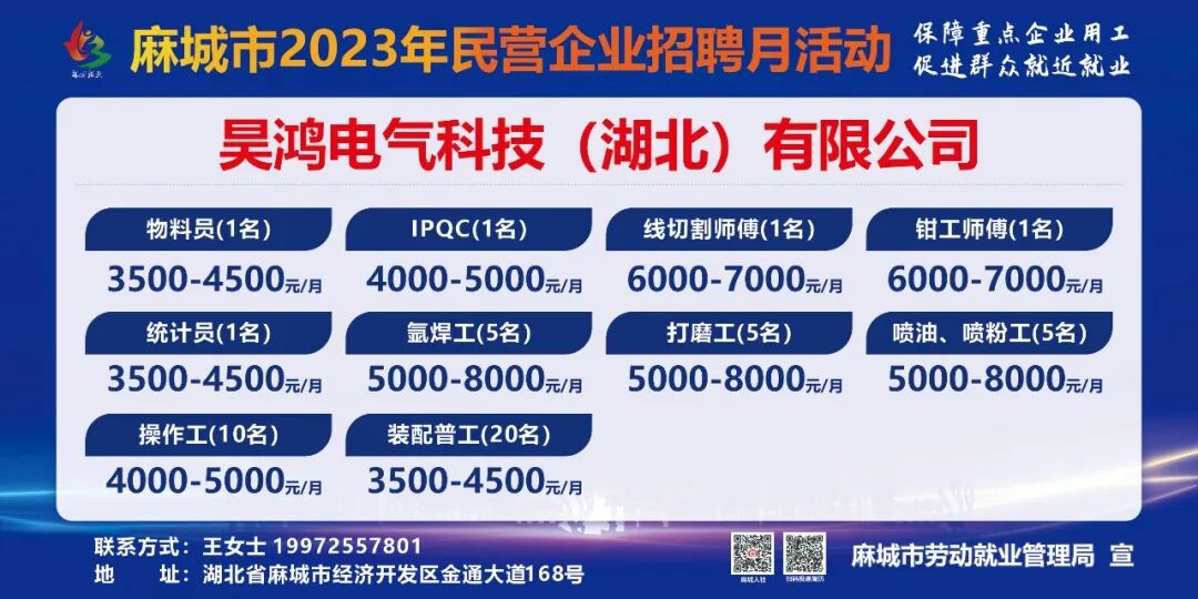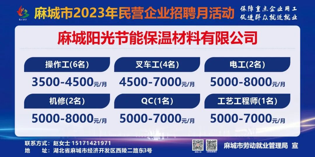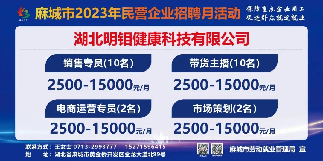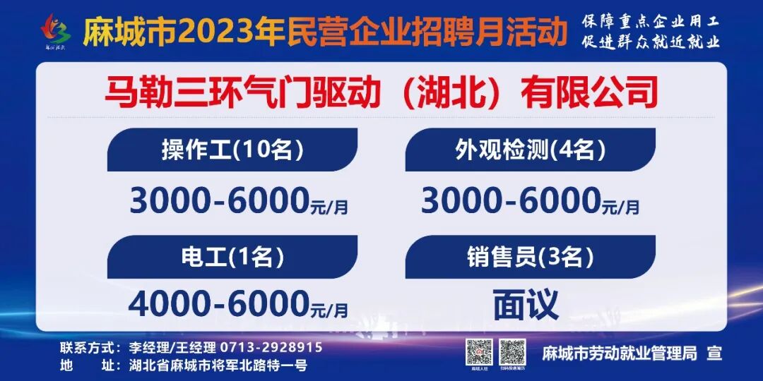 【岗位预告Day1】麻城市2023年民营企业招聘月活动部分岗位速览