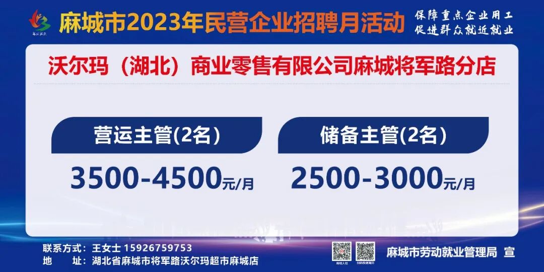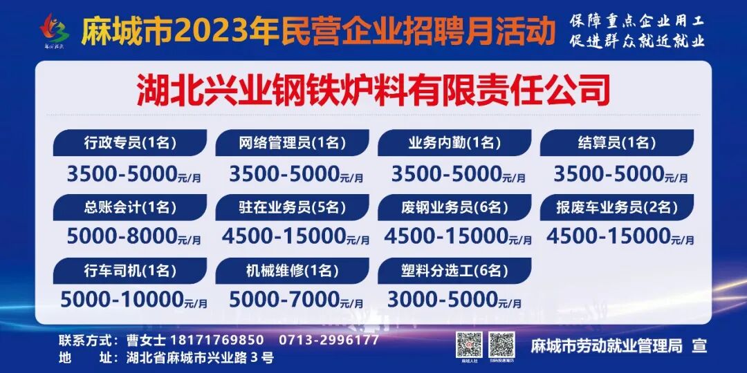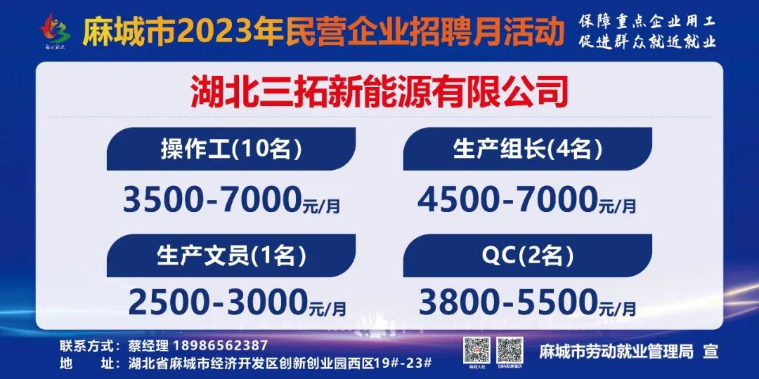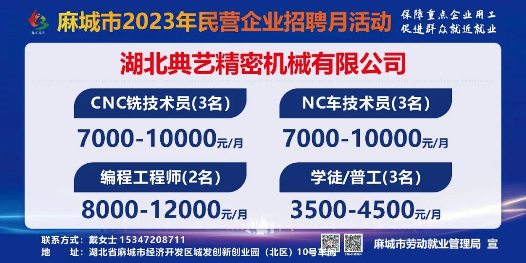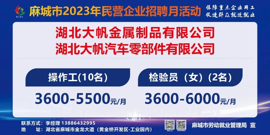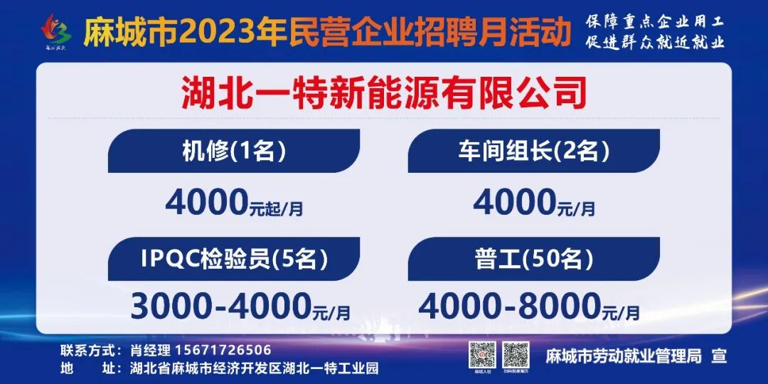 【岗位预告Day1】麻城市2023年民营企业招聘月活动部分岗位速览
