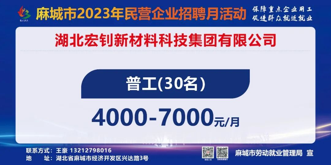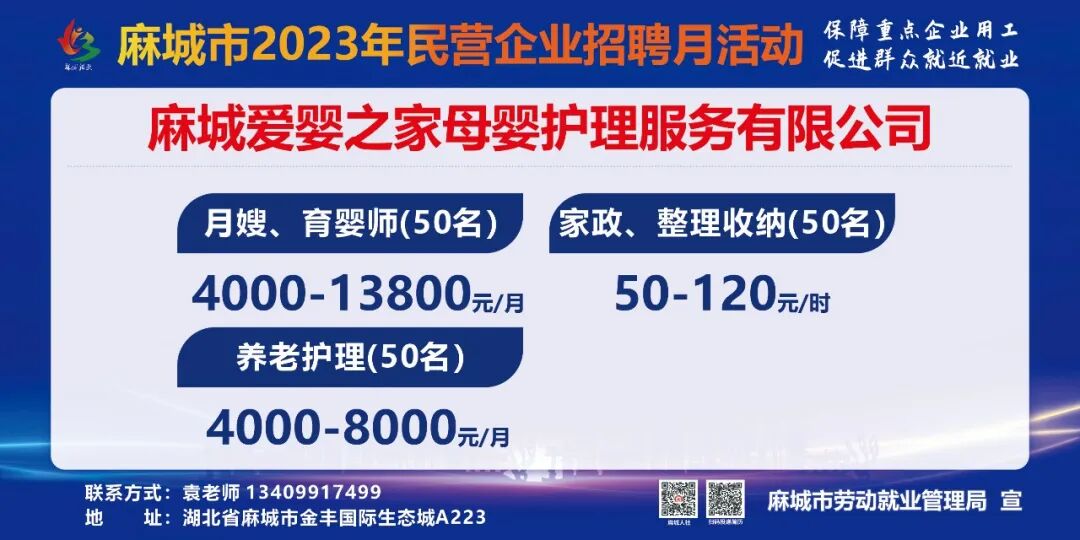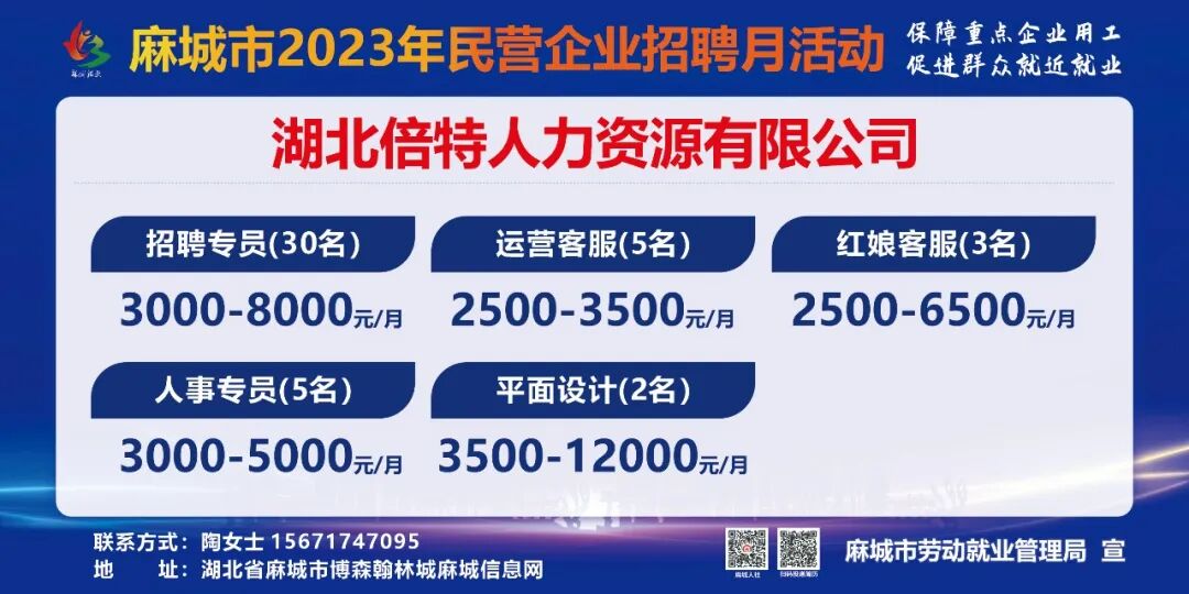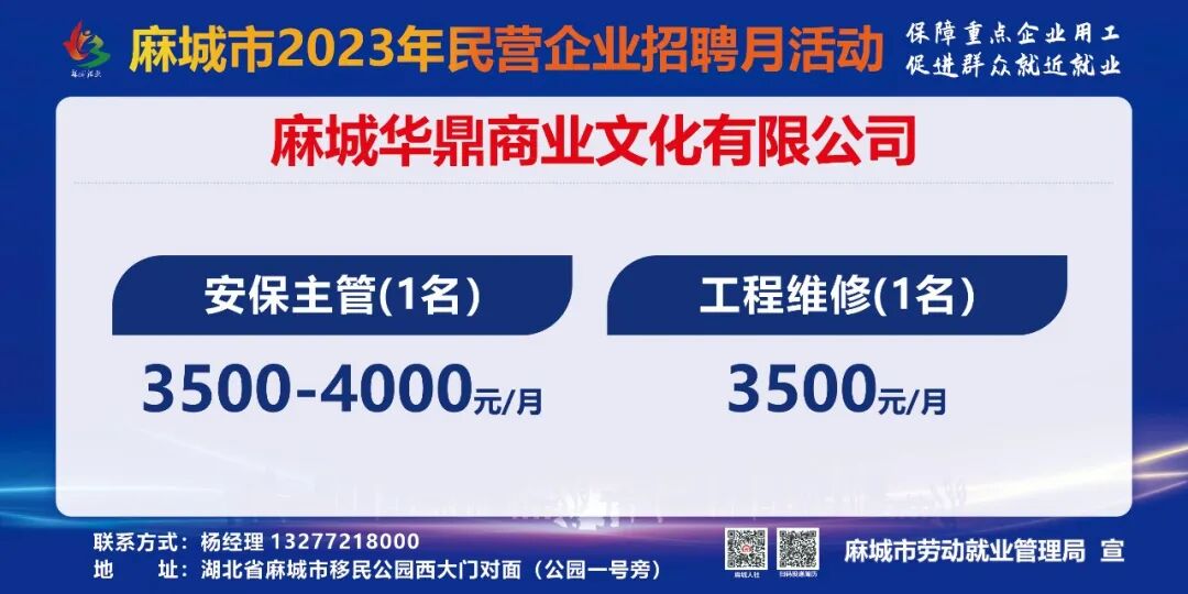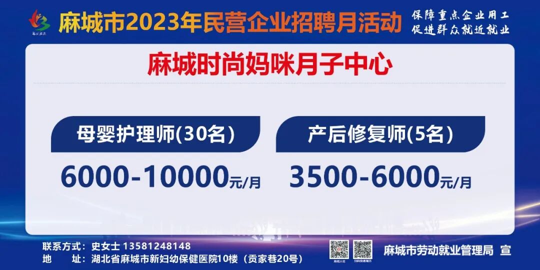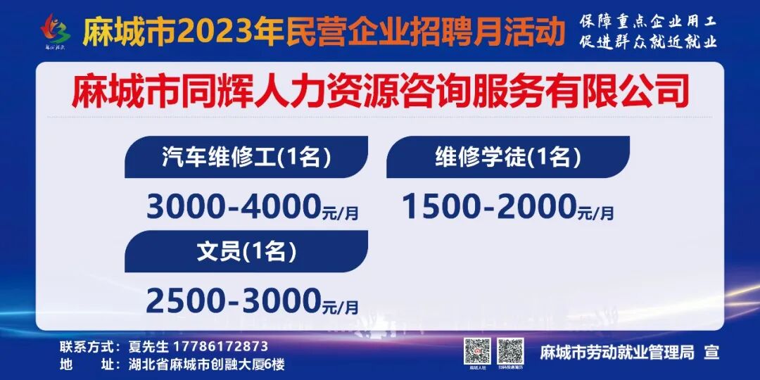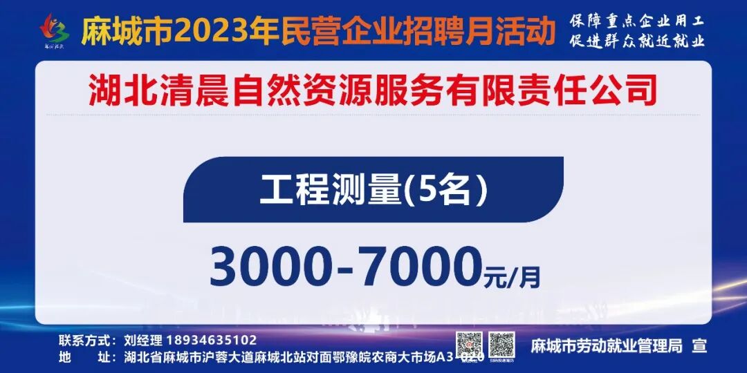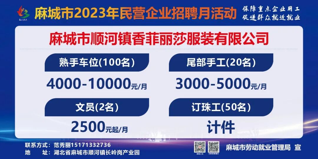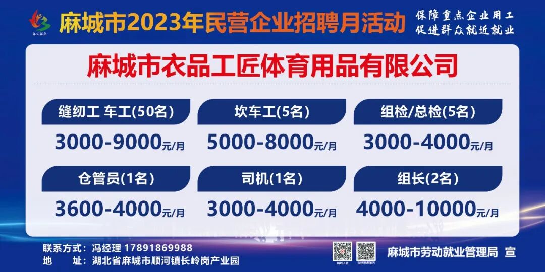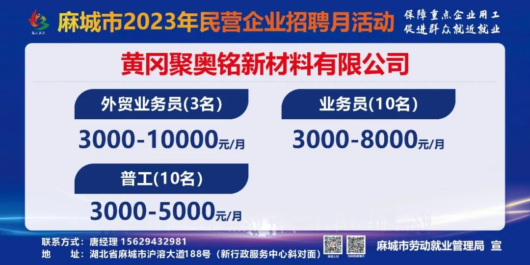 找工作的家人们 快看过来 由麻城市人社局主办的 麻城市2023年民营企业招聘月活动 4月6日在文化小镇广场举行 同步开展线上直播 4月3日-5日发布岗位预告 今天为大家带来21家企业 Day3 有意向岗位,可提前扫码登记: