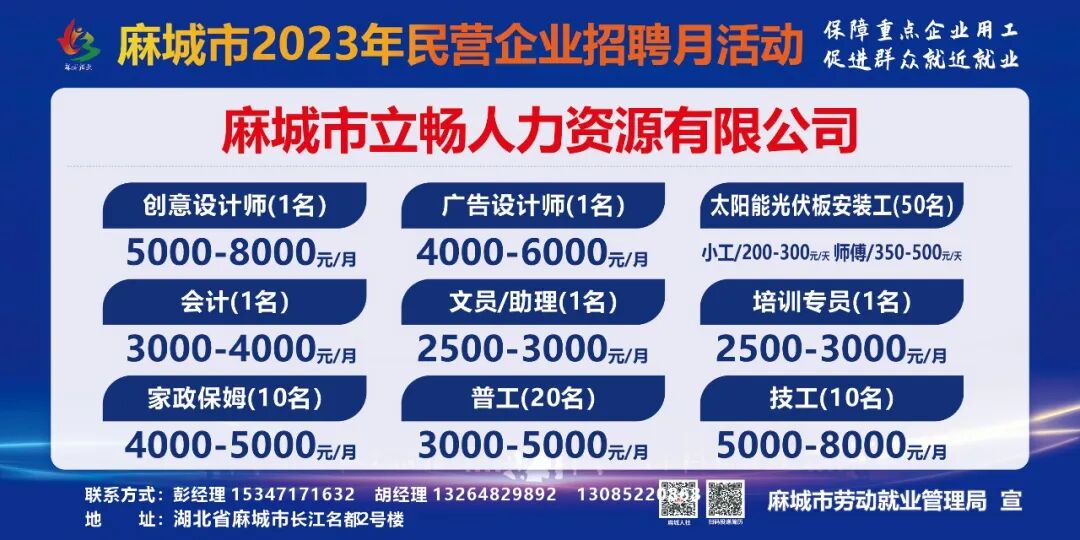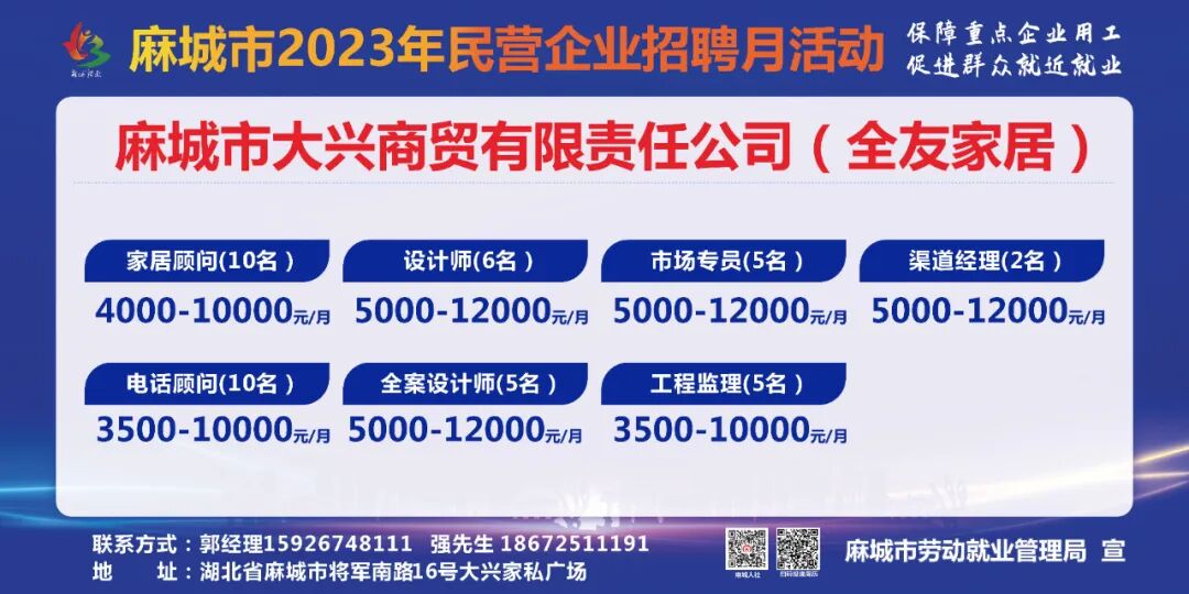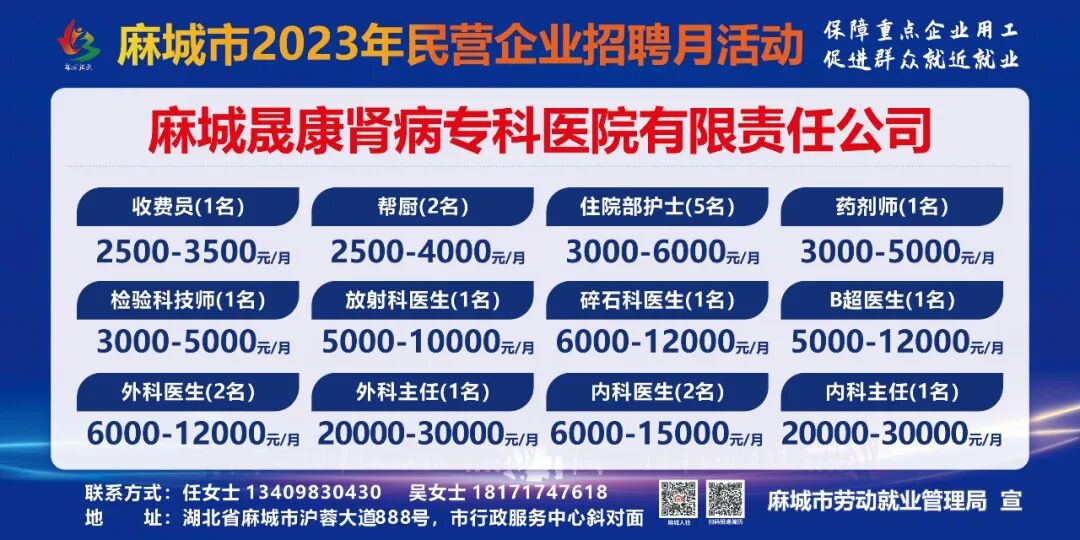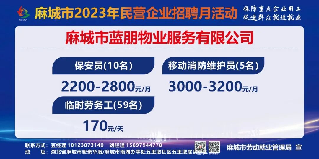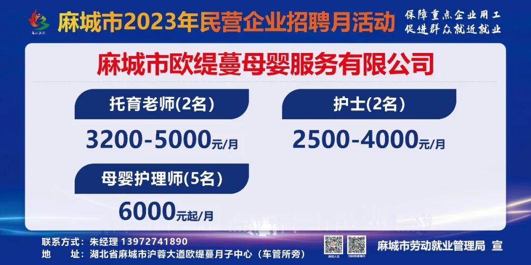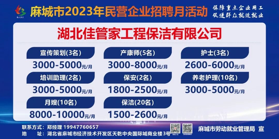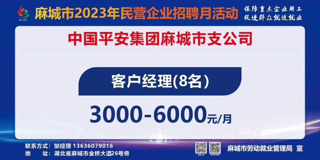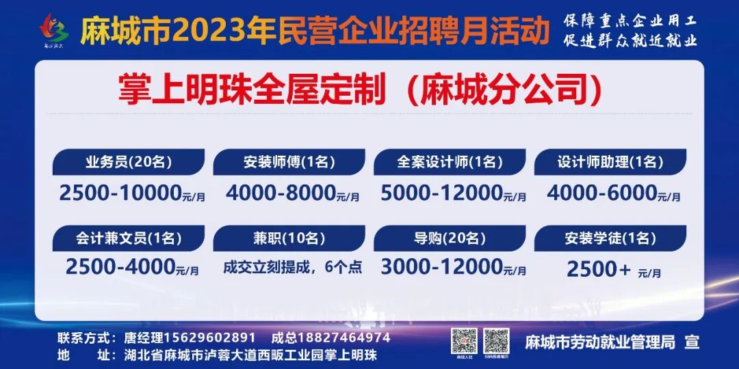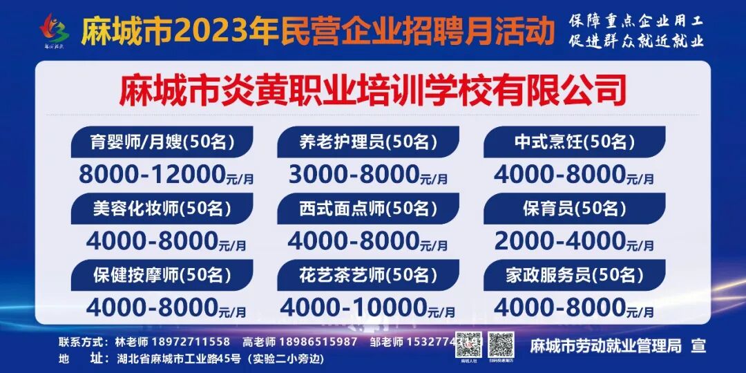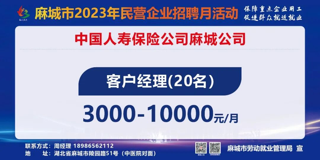 找工作的家人们 快看过来 由麻城市人社局主办的 麻城市2023年民营企业招聘月活动 4月6日在文化小镇广场举行 同步开展线上直播 4月3日-5日发布岗位预告 今天为大家带来21家企业 Day3 有意向岗位,可提前扫码登记: