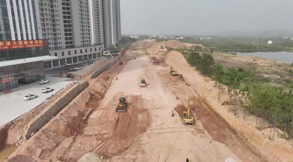记者在金昌路西段工程建设现场看到,推土机、压路机往来穿梭,钻土机、挖掘机等大型机械设备轰鸣声此起彼伏,一派热火朝天的施工场景。