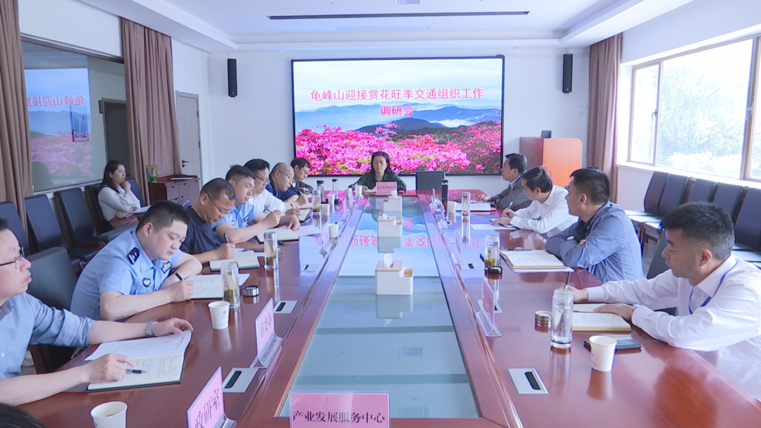 4月19日,市委常委、市委办公室主任周斐带队,实地督导龟峰山迎接赏花旺季交通组织工作并召开座谈会,副市长、市公安局长陈琪参加活动。