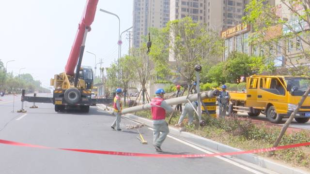 4月19日,市供电公司组织施工人员对孝感乡路南段19根占道电杆进行拆除,至此,孝感乡路供电线杆拆改工作全部完成,消除了电杆占道带来的安全隐患,也让道路更加畅通、美观。