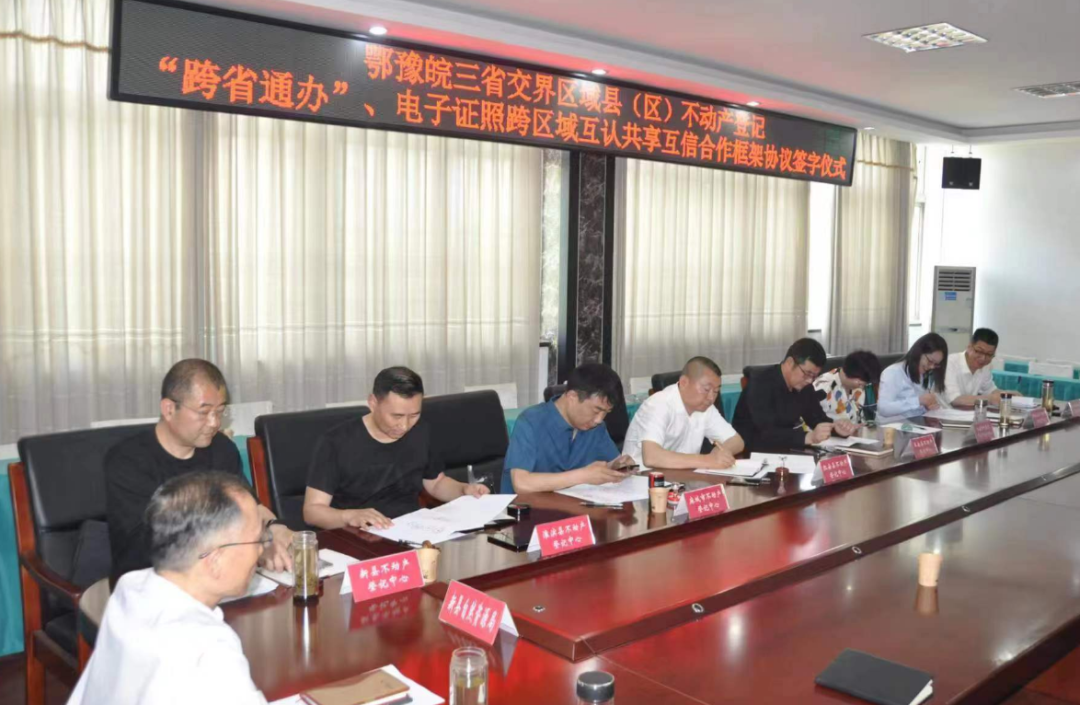 4月20日,来自鄂豫皖三省交界区域的8个县(市、区)不动产登记部门齐聚一堂,在河南省新县自然资源局共同签订不动产登记“跨省通办”及电子证照跨区域互认共享互信合作框架协议,奠定了鄂豫皖三省交界区域不动产登记“跨省通办”的合作基础,为优化营商环境迎来了新一轮的探索升级。