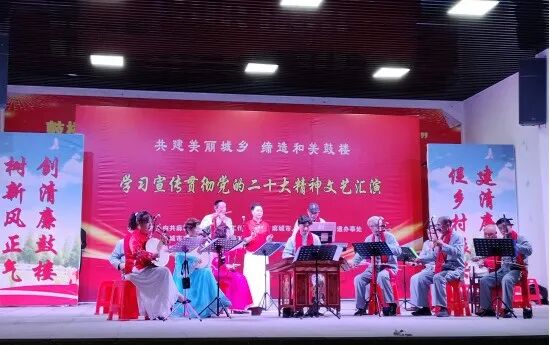 此次文艺汇演由鼓楼街道朝圣艺术团倾情演绎,表演形式以黄梅戏、东路花鼓戏等戏曲为主,穿插了快板、民乐合奏、舞蹈。东路花鼓戏《人间美景在麻城》、三句半《宋家湾新区变了样》、音乐舞蹈快板《百年奋斗创辉煌》、豫剧表演《俩老口学毛选》、碟子表演唱《十绣美麻城》等原创节目精彩纷呈,集中展现了麻城近年来在脱贫攻坚、乡村振兴、共同缔造、城市建设方面所取得的巨大成就和城乡面貌发生的巨大变化,抒发了热爱祖国、热爱麻城、热爱幸福生活的真挚情感,活动现场掌声笑声不断。(曾旭 周月芹)