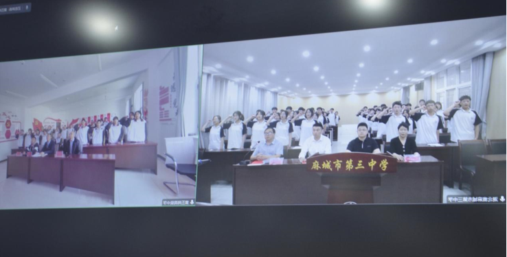 为铸牢中华民族共同体意识,推进鄂疆两地各族青年学生交往交流,增进各族学生对中华民族大家庭的认同,正值纪念“五四运动”104周年,麻城市第三中学与新疆生产建设兵团第五师高级学校通过线上连线的形式,共同开展“‘五四’联动话鄂疆友谊 云端交流促民族团结”线上联谊暨铸牢中华民族共同体意识主题团课活动。