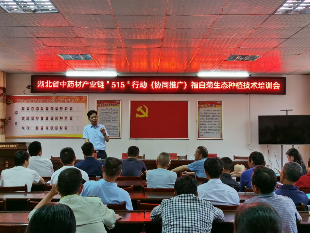 5月25日,湖北省中药材产业链“515”行动(协同推广)专家,华中农业大学梅之南教授、王彩云教授来麻城调研福白菊产业发展情况,在黄土岗镇赵家畈村召开福白菊生态种植技术培训会,市政府党组成员陈焕文参加活动。