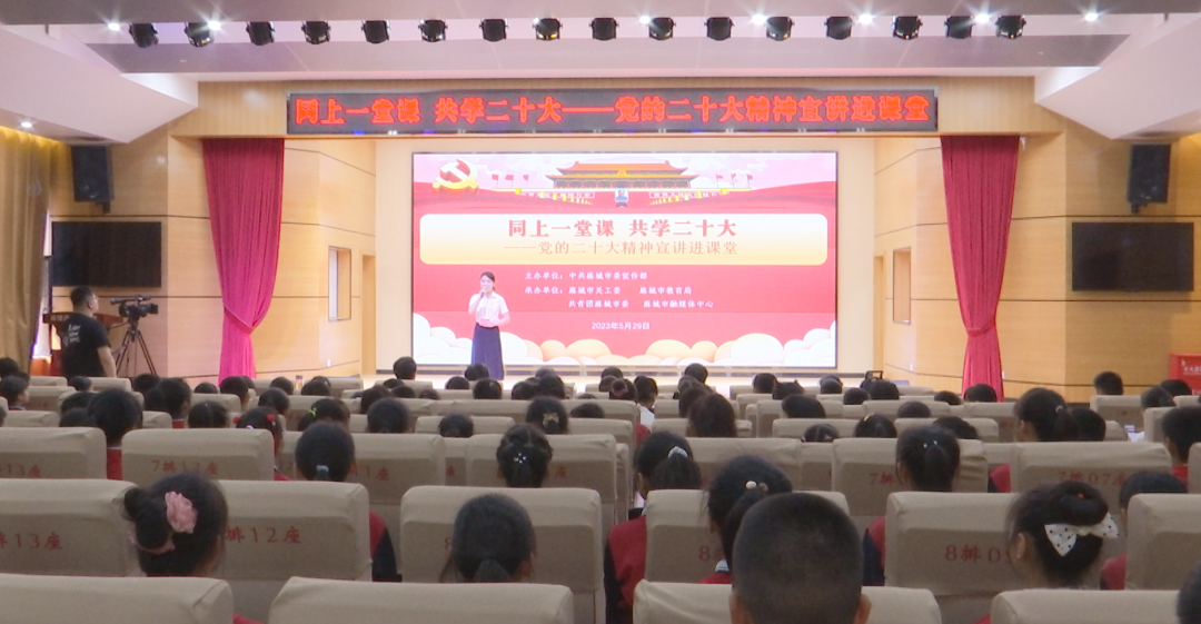 为深入推进党的二十大精神宣讲进校园、进课堂,进一步激发广大青少年爱党爱国情怀,汇聚共酿教育情、共圆中国梦力量,5月29日,市委宣传部、市关工委、市教育局、团市委、市融媒体中心联合开展“同上一堂课 共学二十大——党的二十大精神宣讲进课堂”主题活动。