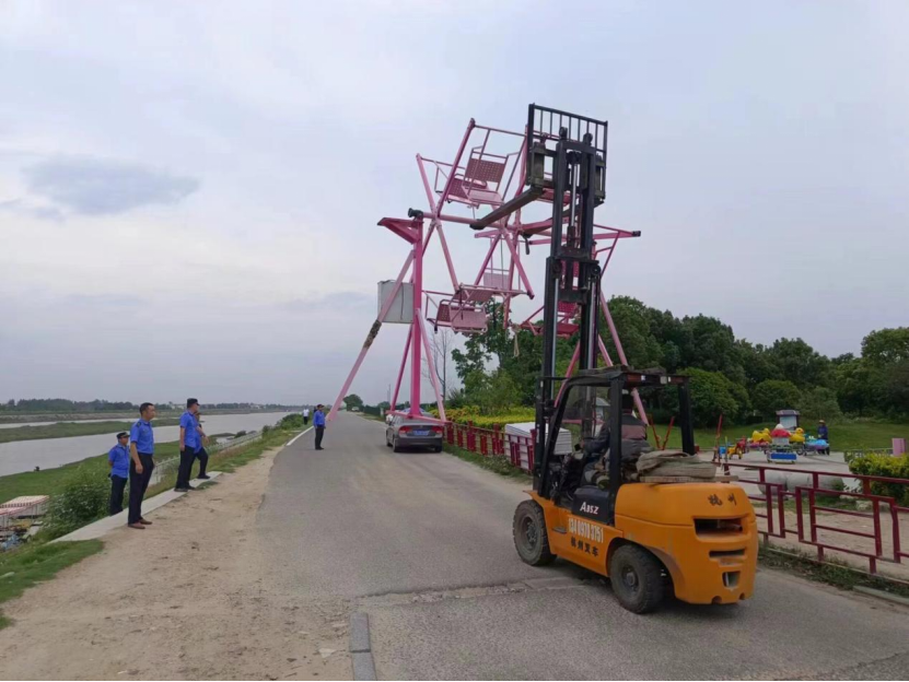 降低安全隐患,清退大型游乐设施。为规范管理秩序,5月23日,市城管执法大队聘请吊车、叉车等大型机械,对四桥道路右侧的转弯等3处大型高空游乐设施进行了清理整治,同时,还对周边整体环境进行了清理整治,原本杂乱无章的场地变得宽敞、明亮。