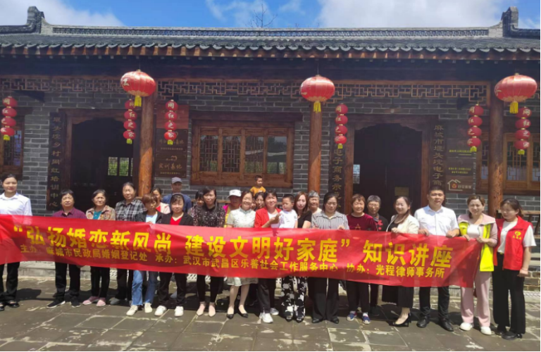 为推动移风易俗、弘扬时代新风,6月6日,市民政局婚姻登记处邀请专业律师、婚姻家庭辅导室专职社工深入黄土岗镇堰头垸村开展“弘扬婚恋新时尚,建设文明好家庭”为主题的宣传活动。