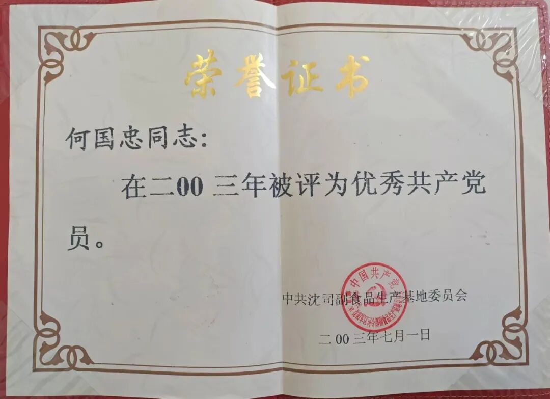 以军人的坚韧,扎根基层。何国忠1987年入伍,在沈阳部队,他当过警卫兵,也当过炊事员。期间他吃苦耐劳,勤奋肯干,被光荣地留在部队,到2004年才退伍。17年间,他曾三次获得过个人三等功,也得过“优秀义务兵”的荣誉证书,还被评为过“优秀共产党员”。