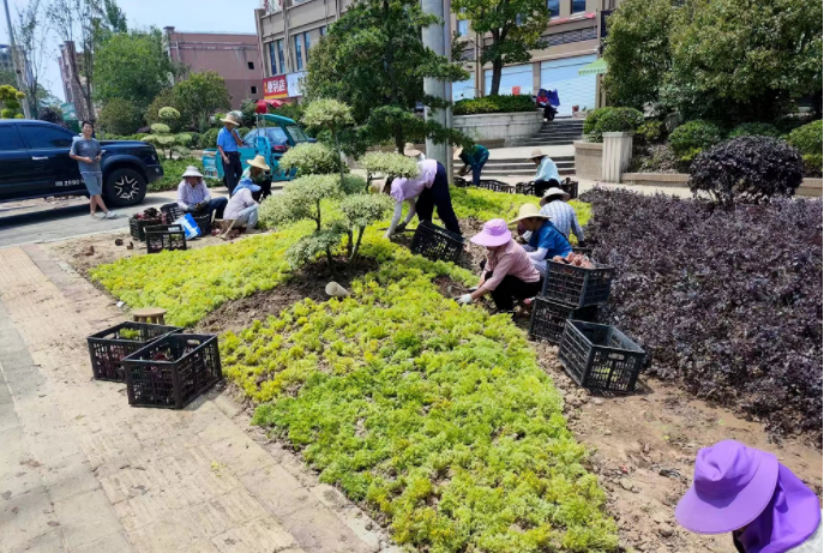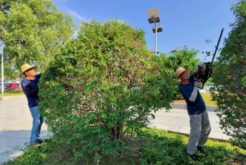 整形修剪。夏季园林植物茁壮生长,结合植物生长习性,园林工人对乔灌木、花灌木、绿篱等进行精细化修剪整形。绿篱修剪做到横平竖直、整齐划一、层次分明;造型植物修剪做到轮廓清晰、形状饱满、线条圆润。及时去除折断枝、下垂枝,使水分养分集中供应,着力提升城市绿化景观效果。