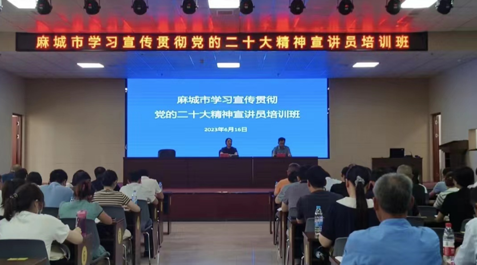 为提高全市宣讲员的理论素养和业务能力,扎实开展宣讲工作,进一步掀起学习宣传贯彻党的二十大精神热潮,6月16日, 麻城市学习宣传贯彻党的二十大精神宣讲员培训班在麻城职教集团开班。