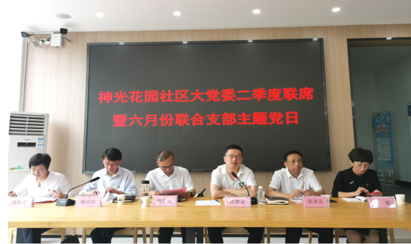 6月18日,一场特别的社区大党委联席会暨6月份联合支部主题党日活动在神光花园社区一楼办事大厅举行。社区主管单位开发区管委会、社区共建单位城发集团、神光花园社区居住地下沉的党员等共计68人参与。