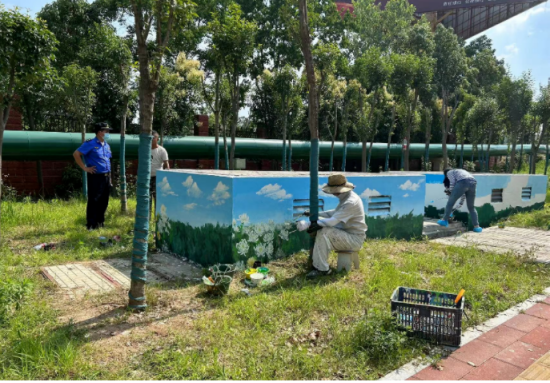变压箱基底座和桥身、桥墩的彩绘既扮靓了城市街道,为城市增添风采,又弘扬了社会文明新风尚,成了提升城市文明形象的重要景观带。(熊利)
