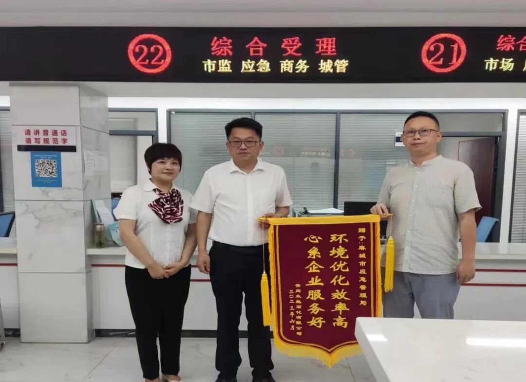 近日,黄冈众能石化有限公司负责人将一面写有“环境优化效率高 心系企业服务好”字样的锦旗送给市应急管理局行政审批服务窗口,为该局的热情服务“点赞”。