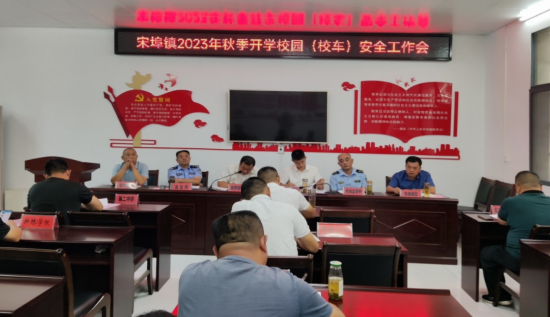 为进一步维护学校周边秩序,优化育人环境,筑牢校园安全防线,确保2023年秋季学期如期开学,8月24日,宋埠镇政府组织教育督导组、派出所、市场监管所、城管、校车公司、辖区学校等单位,召开校园(校车)安全工作会。