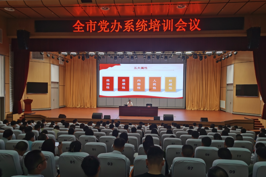 8月27日,全市党办系统开展工作培训,用高质量党务工作服务高质量发展。市委常委、市委办公室主任周斐为全市党办系统党员干部作专题辅导。