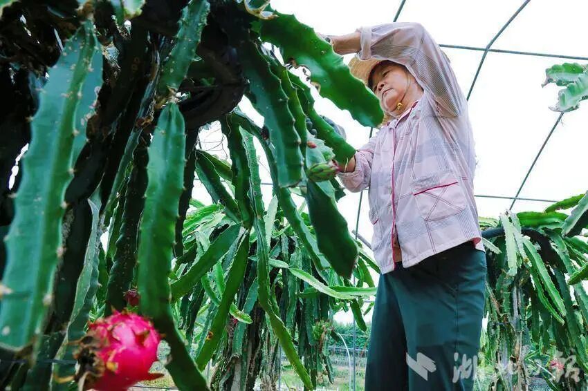 “接下来,种植基地还将加强科学养护,力争果子结得更好,挂果时间更长,吸纳更多村民就近务工。我们希望大家的收入,像火龙果一样红红火火的。”大棚里色泽鲜艳的果子也映红了程安辉的笑脸。