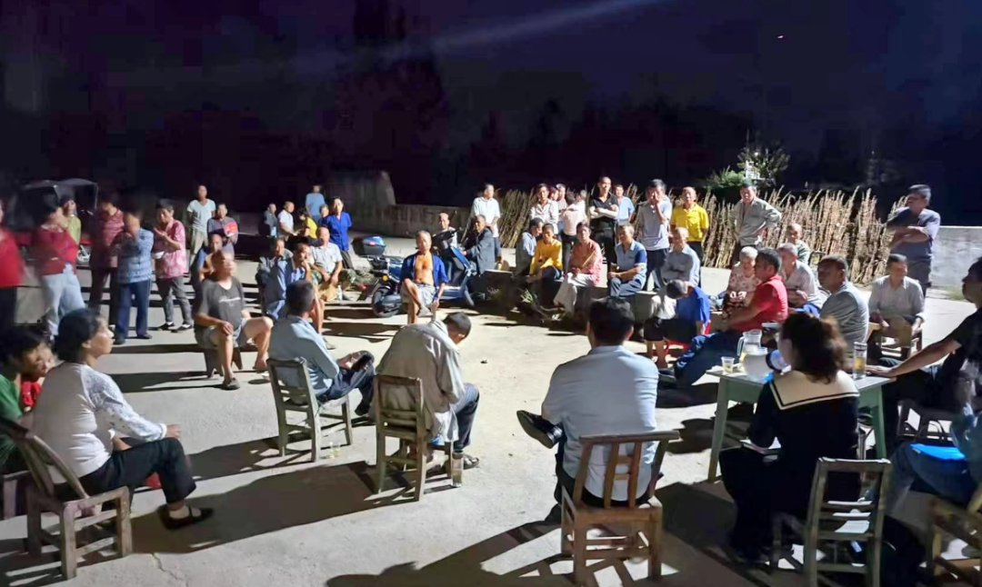 9月14日傍晚,铁门岗乡冯家凉亭村张魏垸的广场上是一番热闹的景象。忙碌了一天的村民,吃罢晚饭就搬上凳子、端上热茶,在暖黄色的灯光下,与乡、村干部围坐在一起,在轻松热烈的氛围中,一场与村民面对面、心贴心的小组会拉开帷幕。