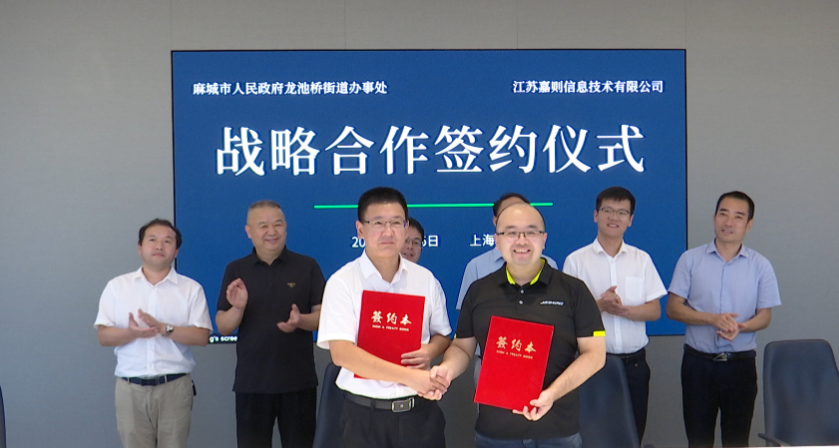 龙池桥街道负责人现场与江苏嘉则(上海)信息技术有限公司签订战略合作协议。(林升)