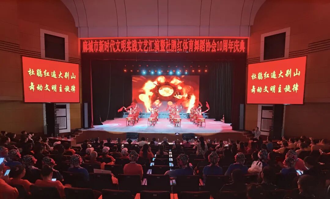 9月23日,主题为“迎中秋,庆国庆,感党恩,跟党走”的麻城市新时代文明实践文艺汇演暨杜鹃红体育舞蹈协会成立十周年庆典在会展中心隆重举行。