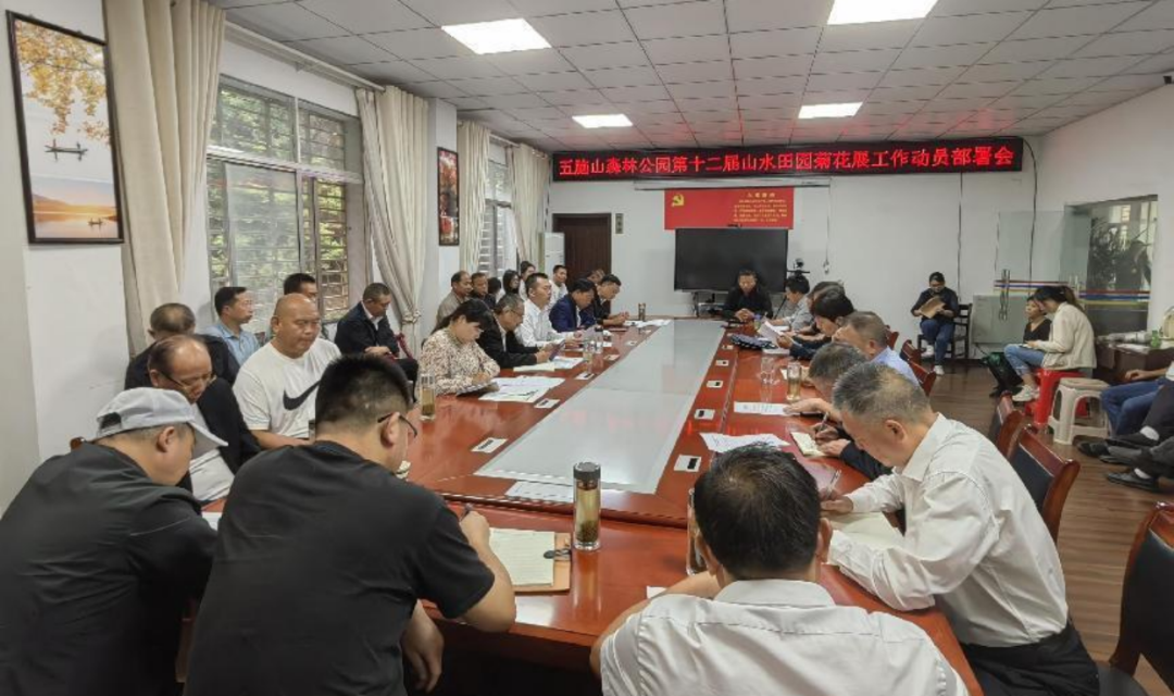 9月23日,湖北五脑山国家森林公园管理处召开了“五脑山森林公园第十二届山水田园菊花展”工作动员部署会,对菊花展开园仪式、中秋国庆双节及为期两个月的菊花展会等相关工作进行了全面的安排部署。