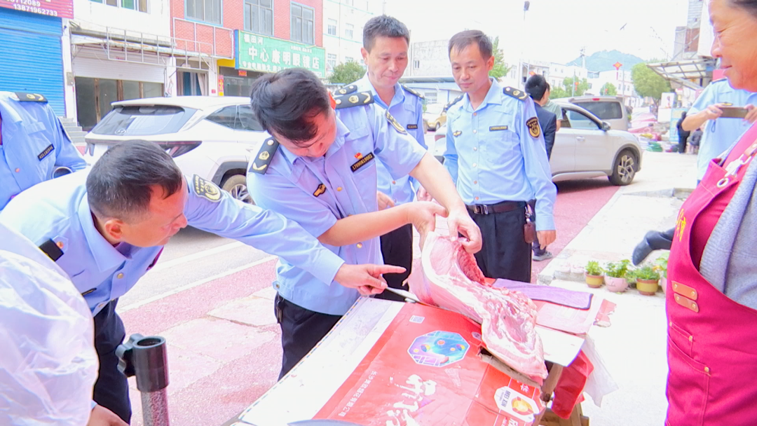 执法人员对镇区范围内猪肉售卖摊点、生猪养殖场、黑山羊纯繁保种基地等地进行动物养殖、屠宰、运输等环节检查。通过发放宣传单页、实地察看,针对生猪产品盖有两章、持有两证,动物防疫合格证,动物检疫合格证明,动物养殖档案及台账记录等进行检查指导。(金一民)