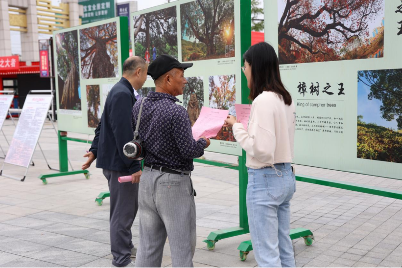 活动现场,古树名木保护科普展板前参观的人络绎不绝,宣传桌前提问的人也不少,科普宣传人员一一解答,并为他们发放《古树名木知识问答》和《古树名木保护措施》宣传单。此次现场宣传活动主要以图文展览、动态视频和发放宣传单等形式开展,充分展示我市古树名木保护成果,号召全社会参与到古树名木的保护中,一同守护绿色记忆。