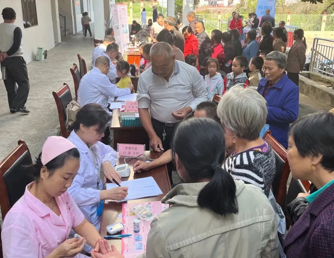 活动现场为茶园冲村周边100多名居民提供健康咨询服务,并开展卫生知识讲座、2024年医保缴费等政策宣讲。(邓旭峰)