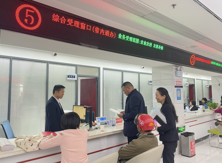 在办理窗口,市农业农村局局长受理审批事项,沉浸式办理业务。通过扎扎实实地“走”,认真细致地体验,详细了解群众对办事服务的体验、评价以及问题建议,提醒办事群众正确使用农机具,注意自身安全,真正做到服务零距离、沟通无障碍,打通政务服务“最后一米”。