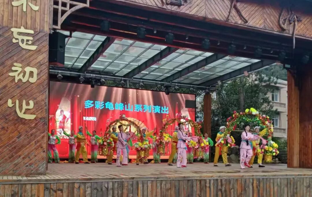10月12日下午,麻城花挑传习所花挑《麻城了了喂》在麻城龟峰山景区民俗大舞台助力麻城龟峰山景区创国家5A级景区文艺演出拉开演出序幕。