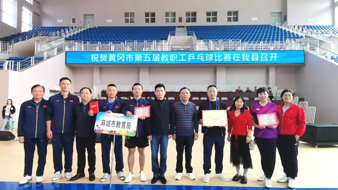 10月27至29日,黄冈市教育系统第五届教职工乒乓球赛在罗田体育中心举行。麻城市教育局代表队经过三天的努力拼搏,在全市14支代表队,120余名运动员(其中有国家健将,国家一级运动员)中,取得了团体第三(铜牌)、女子单打第四、男子单打第四和第六的优异成绩。