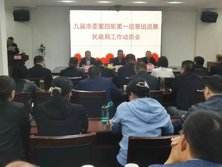 根据市委统一部署,九届市委第四轮巡察采取“一拖二”或“一拖三”方式对12家市直单位开展常规巡察,截至11月9日,市委5个巡察组已分别进驻市交通运输局、市民政局、市商务局、市水利和湖泊局、市卫健局等5家单位并召开动员会。市委各巡察组组长作进驻动员讲话,对配合做好巡察工作提出要求,被巡察党组织主要负责人作表态发言。