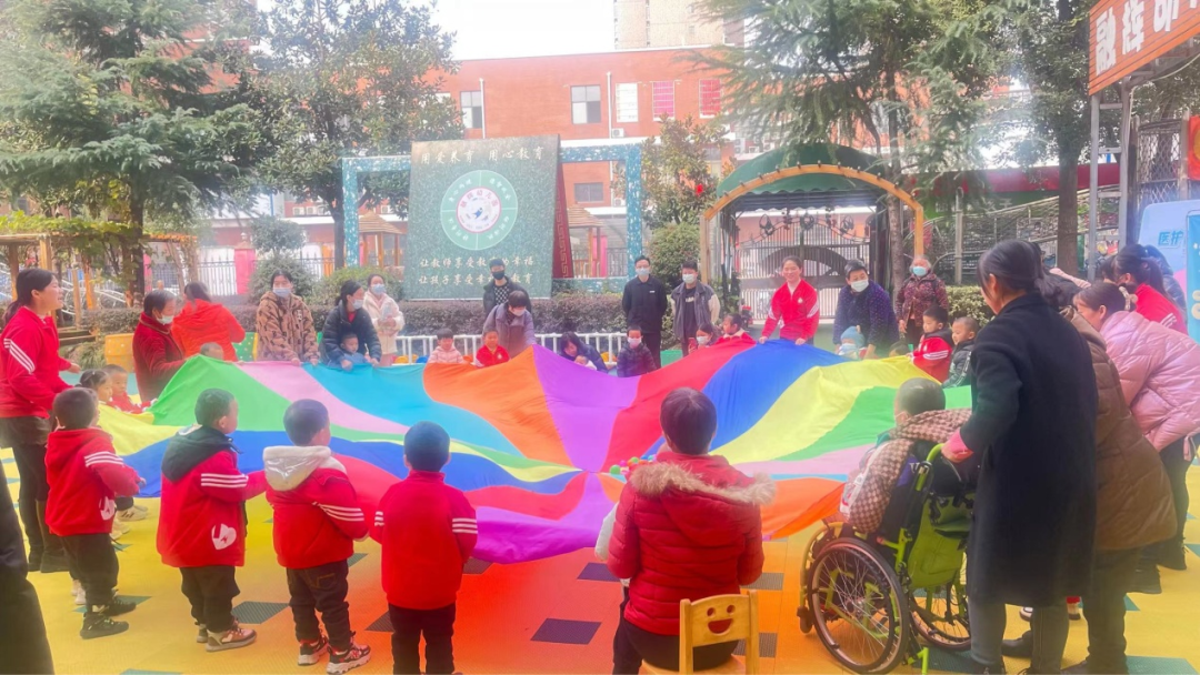 孩子们在家长的陪伴下,融入幼儿园小朋友中。市妇幼保健院儿童康复治疗师积极引导孩子们将日常康复训练的技能运用到各项游戏,让他们在轻松愉快的氛围中,体验与同龄孩子一起学习和玩耍的乐趣。在康复师和幼儿园老师的引导下,特殊儿童们逐渐变得活跃起来,积极参与到找朋友、玩彩虹伞的游戏中,学会拉手、拥抱、认识色彩、听指令活动,并在与同龄孩子的互动中尝试沟通交流,有效提升了特殊儿童的人际交往能力、自我行为管理能力以及社会适应能力。幼儿园的小朋友也学会了接纳和关爱这群特殊的孩子,达到了相互教育的目的。