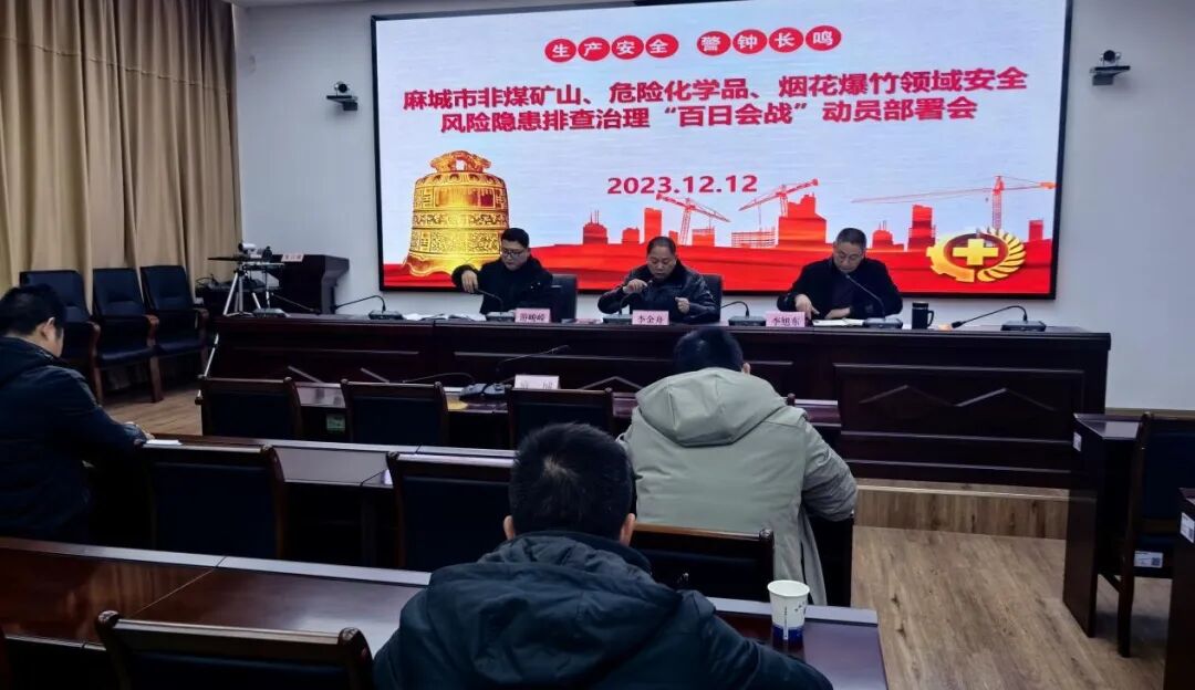 12月12日,市应急管理局召开非煤矿山、危险化学品、烟花爆竹领域安全风险隐患排查治理“百日会战”动员部署会,结合安全生产“双攻坚”,切实防范化解高危行业领域安全风险,确保安全。
